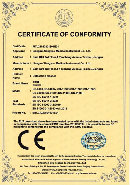 LA CHINE Jiangsu Xiangyou Medical Instrument Co., Ltd. Certifications